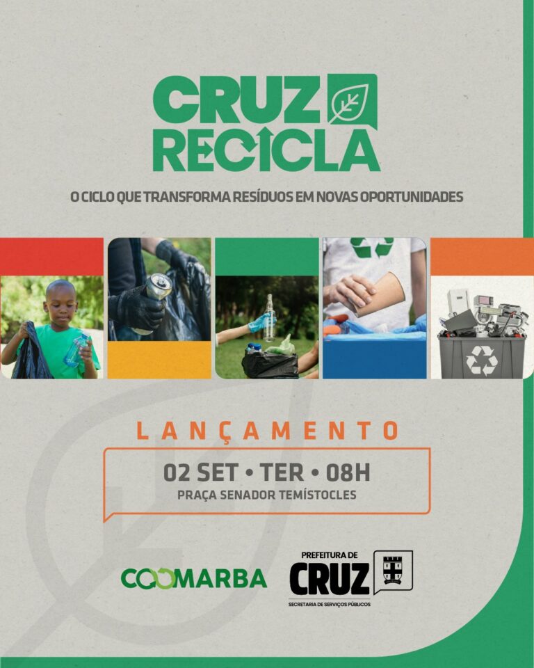 Lançamento do Cruz Recicla será na próxima terça (02) 29 de agosto de 2025 O projeto de coleta seletiva Cruz Recicla terá um lançamento especial na Leia a matéria completa »