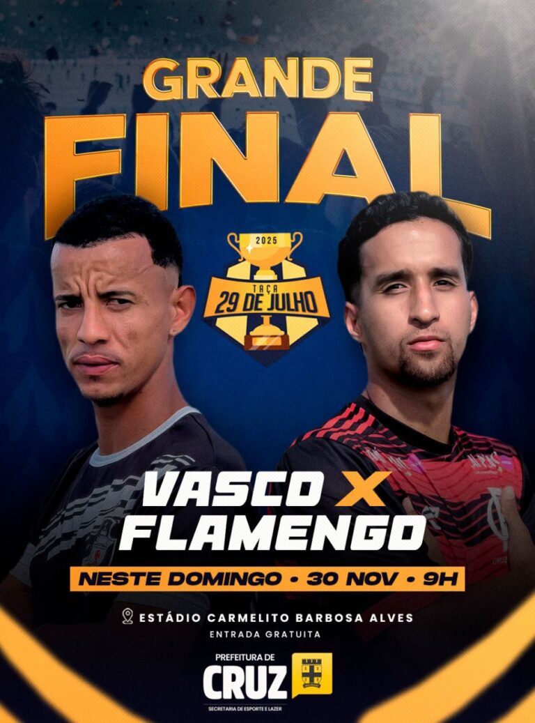 Final da Taça 29 de Julho é neste domingo (30); Flamengo e Vasco disputam título 28 de novembro de 2025 Neste domingo (30), a decisão da Taça 29 de Julho entre Flamengo Leia a matéria completa »