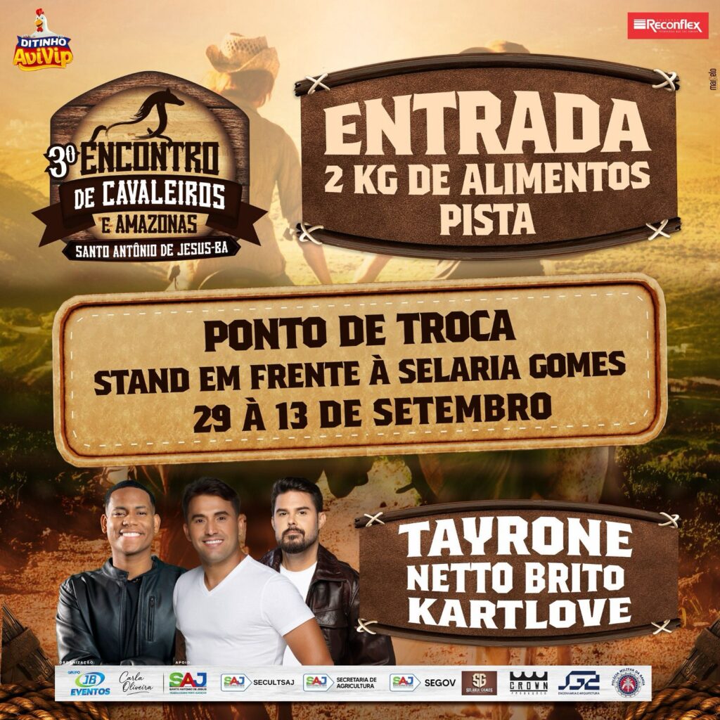 Santo Antônio de Jesus se prepara para viver um grande momento de celebração e tradição: o 3º Encontro de Cavaleiros e Amazonas, que acontece no próximo dia 13 de setembro. O evento promete movimentar a cidade com música, cultura, lazer, solidariedade e geração de renda.
