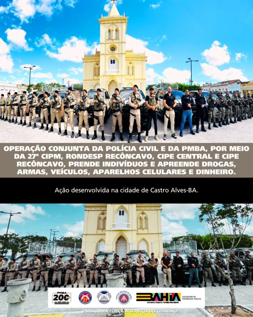 A operação reuniu forças da Polícia Civil e da Polícia Militar, envolvendo as Delegacias Territoriais de Castro Alves, Amargosa e Mutuípe, a 4ª COORPIN, CIPE-Central, CIPE-Recôncavo, RONDESP-Recôncavo, 27ª CIPM/Cruz das Almas, além da Superintendência de Segurança Pública de Castro Alves, evidenciando a integração e o alinhamento estratégico entre as instituições.