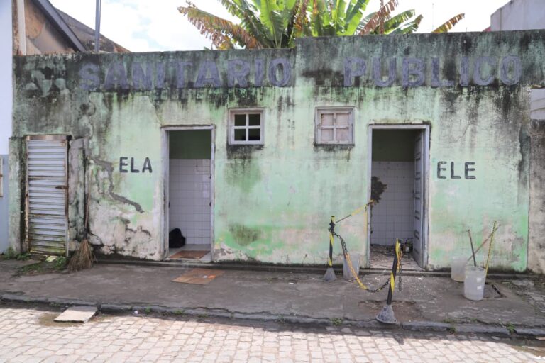 O sanitário público da Rua Simpliciano Leite, no Centro de Cruz das