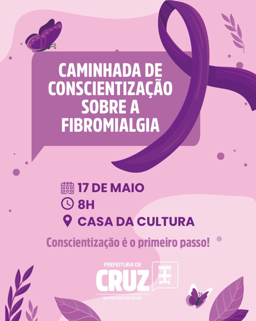 Neste sábado (17), a Prefeitura de Cruz, por meio da Secretaria de Saúde, realizará uma caminhada em alusão ao Dia Nacional de Conscientização e Enfrentamento da Fibromialgia, ocorrido no último dia 12.