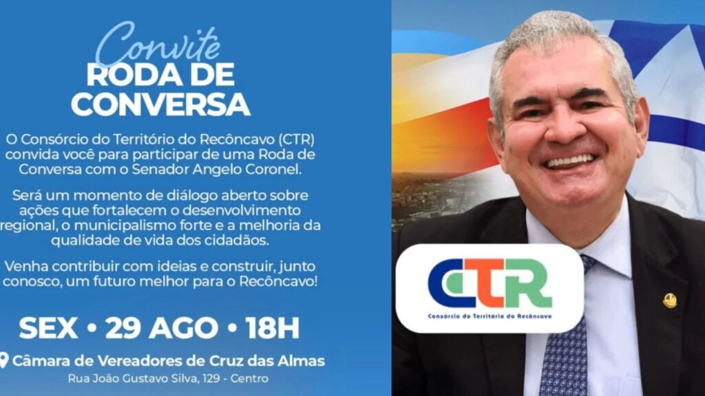 O Consórcio do Território do Recôncavo (CTR) promove a Roda de Conversa com o senador Angelo Coronel, abrindo espaço para um diálogo direto com a população e lideranças locais.