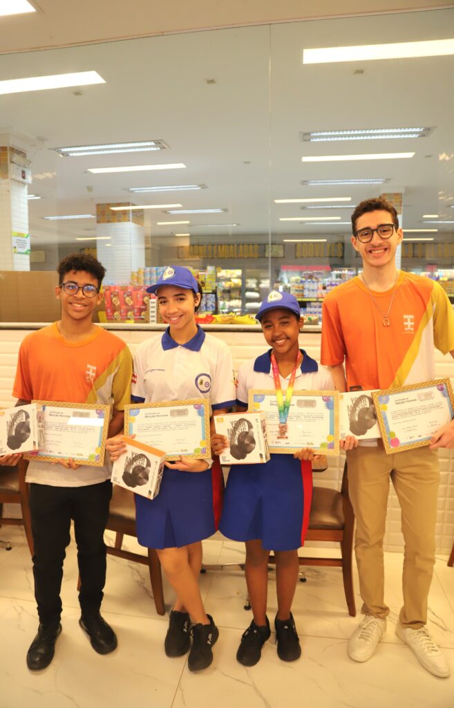 Os alunos que, com dedicação, esforço e apoio de professores e famílias, se destacaram e receberam as premiações, foram presenteados pela Prefeitura com fones de ouvido e um copo térmico. “Participar da OBMEP significa colocar nossos alunos em contato com situações-problema que exigem criatividade, dedicação e disciplina. Cada conquista representa não apenas o reconhecimento individual, mas também o orgulho e a valorização da escola pública, incentivando novos estudantes a acreditarem em seu potencial”, destacou Geisa.