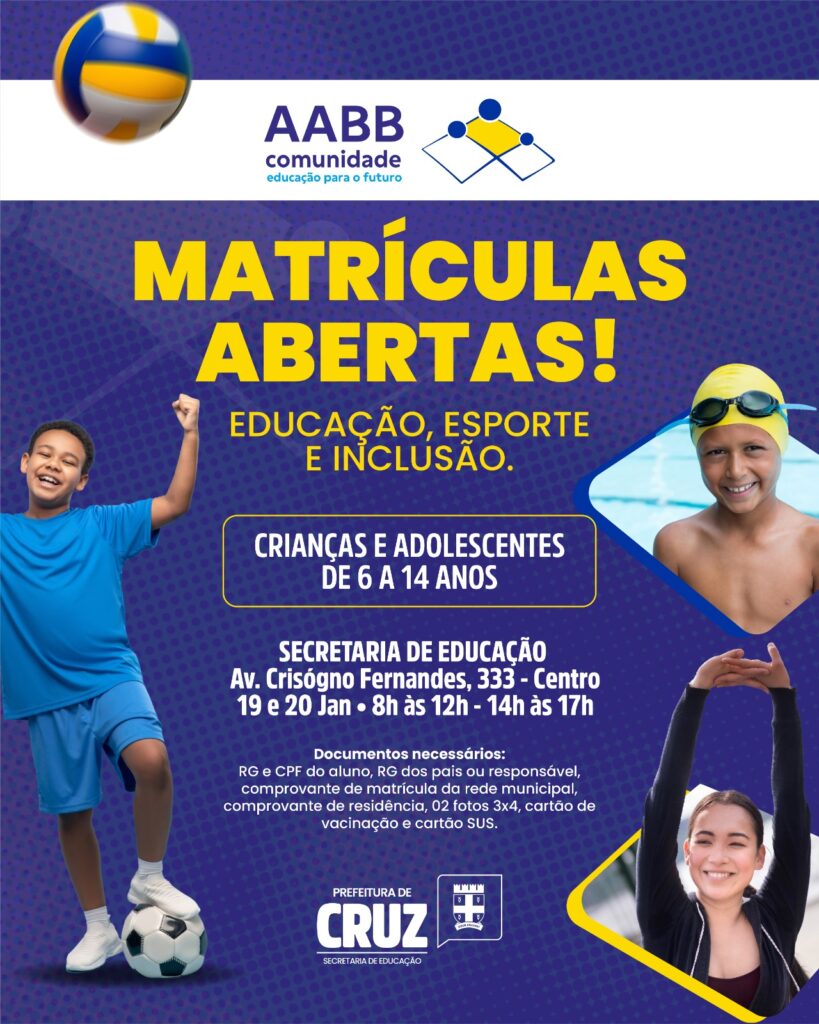 Com o objetivo de contribuir com a inclusão da juventude em situação de vulnerabilidade social, o AABB comunidade oferece diversas atividades esportivas, aulas e oficinas de música em uma parceria entre a Prefeitura de Cruz, a Federação Nacional das AABBs (FENABB) e da Fundação Banco do Brasil (FBB).
