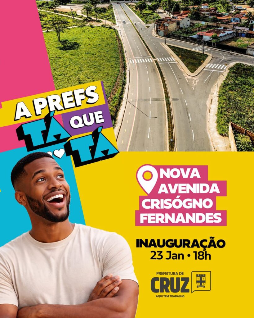 Marcando o início de uma era de mais desenvolvimento em Cruz das Almas, a nova Avenida Crisógno Fernandes já tem data para a grande festa de inauguração.