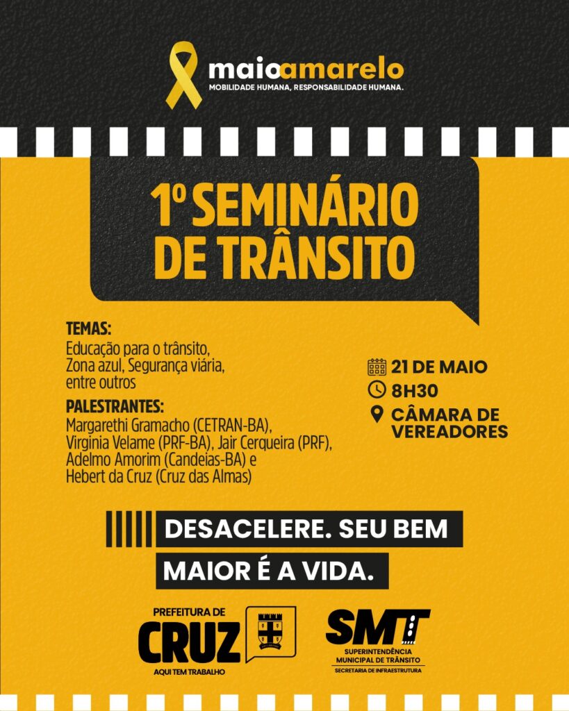 O seminário integra a campanha Maio Amarelo, mês dedicado à prevenção de acidentes de trânsito. Durante todo o mês, a SMT tem promovido uma série de ações educativas voltadas à prevenção de acidentes e à valorização da vida, incluindo palestras em escolas, entrevistas nas rádios locais, blitz educativas e outras atividades que reforçam o compromisso com a segurança nas vias públicas.