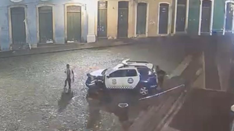 Dois homens depredaram uma viatura da Guarda Civil Municipal de Salvador (GCM), na madrugada desta segunda-feira (5), no Largo de Pelourinho, em frente à Fundação Casa de Jorge Amado, no Centro Histórico.